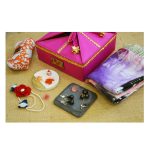 This Hamper includes lapel pin , earrings , dupatta , rakhi , sunglasses.